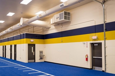 This project involved transforming an existing storage facility for Concordia into an Athletic Practice Facility that can be used year-round for all athletics at the Concordia University. We provided a weight training facility which is state-of-the-art for the campus. Unfinished concrete floors were upgraded with turf flooring for the practice field and rubber athletic flooring for the weight room. The new athletic turf is to be used for lacrosse, football, baseball, etc. The existing facility had no HVAC or plumbing and minor electrical throughout the facility, CoBeck assisted with reinforcing the existing structure to accommodate the new facility’s needs and requirements.